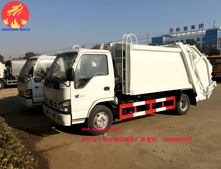 慶鈴五十鈴國五壓縮式垃圾車,采用慶鈴600P輕卡底盤,慶鈴130馬力發(fā)動(dòng)機(jī),尼龍?zhí),ABS。廂體材料為武鋼優(yōu)質(zhì)炭鋼,厚度為邊5mm,廂體容積為5-6立方米。由裝料機(jī)構(gòu)、壓縮機(jī)構(gòu)、卸料機(jī)構(gòu)、油泵、油箱、控制閥等組成的液壓機(jī)構(gòu)組成。裝料機(jī)構(gòu)由支架、連桿機(jī)構(gòu)、凸輪、掛鉤等組成,在油缸作用下,將垃圾桶內(nèi)的垃圾自動(dòng)翻轉(zhuǎn)倒入料斗內(nèi)。主要用于收集與轉(zhuǎn)運(yùn)生活垃圾。