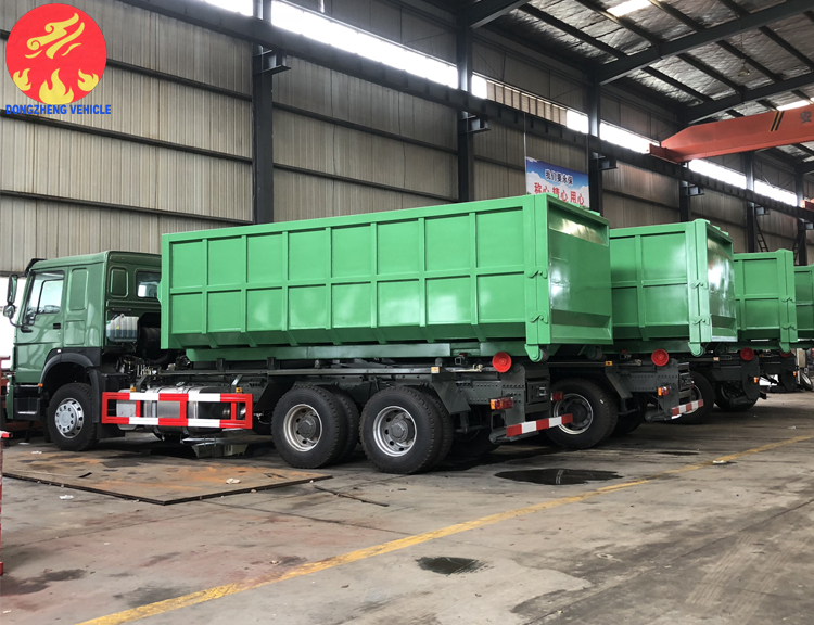 該車型采用重汽豪沃后雙橋336馬力專用底盤,上裝是可伸縮勾臂式結(jié)構(gòu),氣動控制,鋼絲胎。