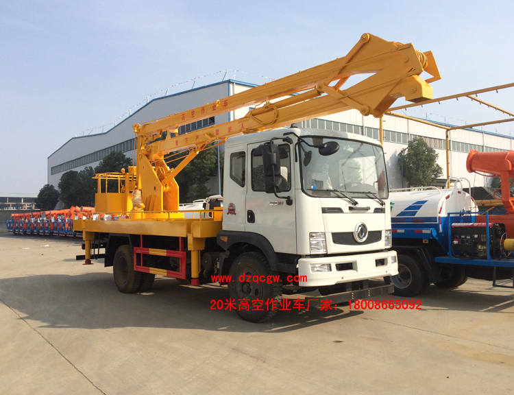 東風(fēng)御虎18米20米高空作業(yè)車,排半駕駛室,3950mm或4500mm軸距,東風(fēng)6檔變速箱,3.6噸前橋,8噸后橋,9.00-20輪胎。