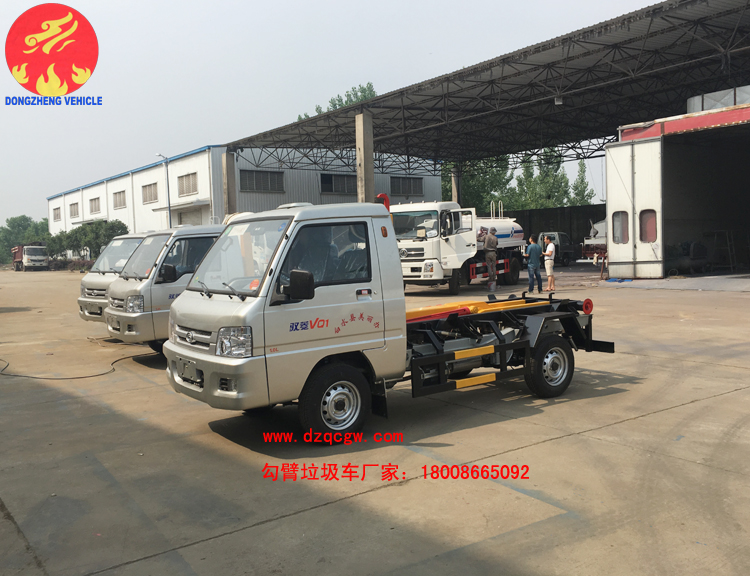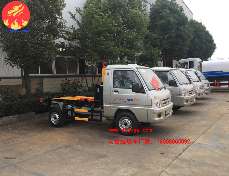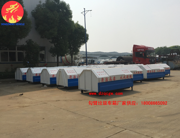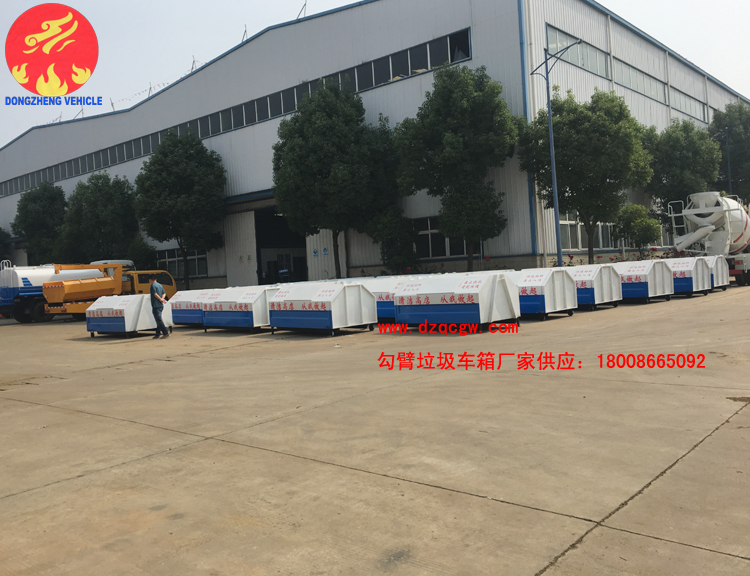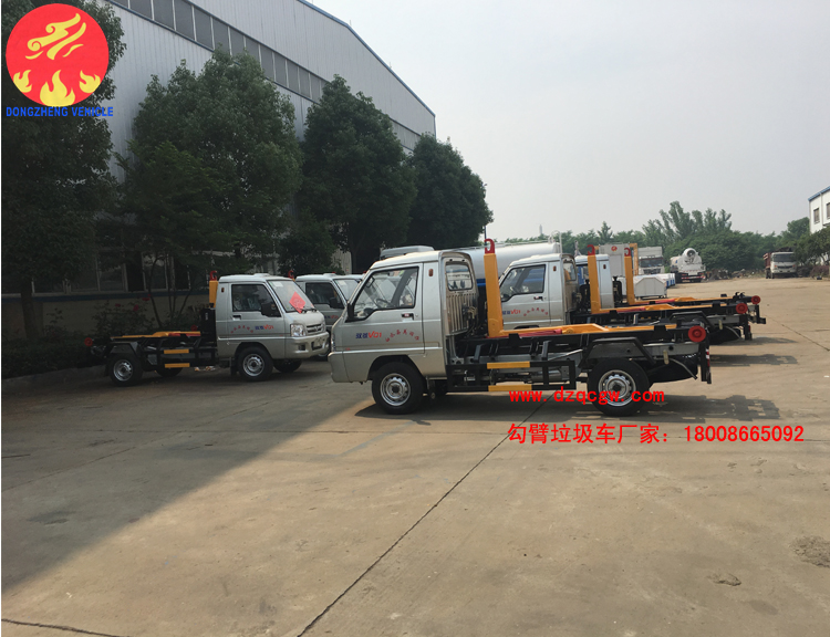 我公司生產(chǎn)的勾臂垃圾車采用高新設計可伸縮的鉤臂,實現(xiàn)垃圾廂的二次吊裝,自吊上放下,可自行傾倒垃圾。該車結構簡單,操作穩(wěn)定方便,裝卸效率高,機械化程度高,節(jié)省人力。一車可帶多個大廂,在裝卸的運輸過程中可有效地避免二次污染。