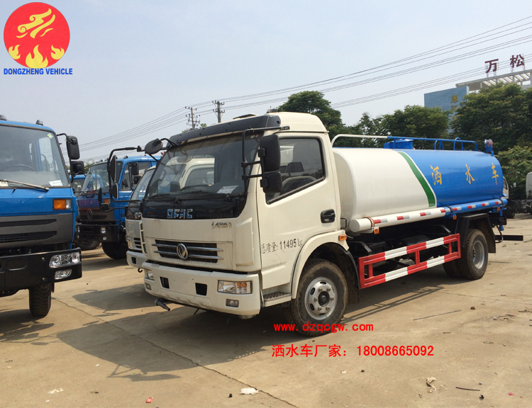 東風(fēng)多利卡灑水車,我公司上了兩款國五公告,型號分別是SZD5110GSS5以及SZD5111GSSE5型灑水車。罐體有效容積均為7.35方,實(shí)際容積為標(biāo)準(zhǔn)9.3方。灑水車上裝標(biāo)配前沖、后灑、側(cè)噴、工作平臺(tái)、綠化高炮、自流閥、消防接口,輸水管3米2根,億豐泵或金龍泵,控制方式為手動(dòng)。是中型園林綠化專用車的不二之選。