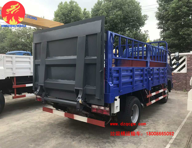 由于人民生活水平不斷提高,為了滿足人們對垃圾治理的及時性、徹底性的需求。我公司近期推出一種新的垃圾運輸品種即桶裝垃圾運輸車。該類型的垃圾運輸車為國五排放,整車上藍牌,可以市內(nèi)小區(qū)內(nèi)穿梭,車廂為倉柵,尾部帶液壓尾板,可一次性處理20-30余桶生活垃圾。大大的提高了垃圾收集的速度。