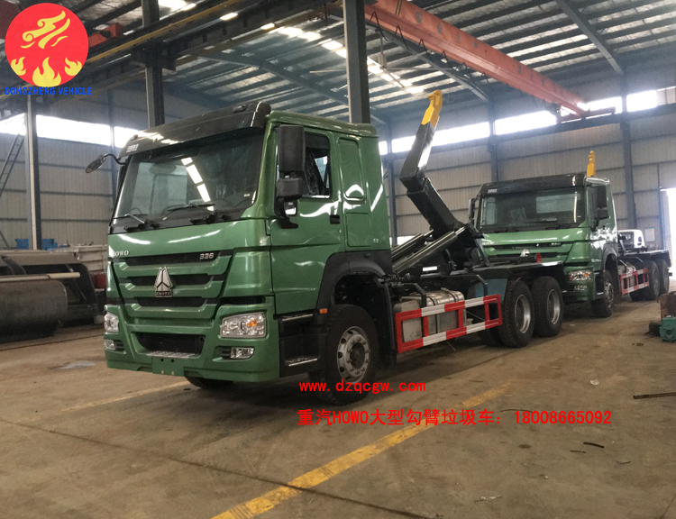 出口中美洲危地馬拉共和國的25噸豪沃大型勾臂垃圾車已下線,該車型是歐二標準,采用重汽豪沃336馬力6X4底盤,11R225的鋼絲胎,帶空調(diào),原裝取力器。上裝勾臂部分采用伸縮臂結(jié)構(gòu),帶后支腿。該車型用于客戶拉棕櫚果用,可大大的減少人工成本。