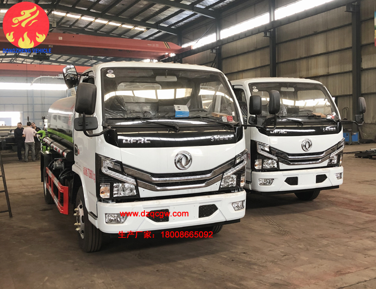 該批綠化噴灑車采用標準國六底盤,3308mm軸距,柴油115馬力國六發(fā)動機,5檔箱,鋼絲胎,帶ABS。罐體實際容積約5立方米。
