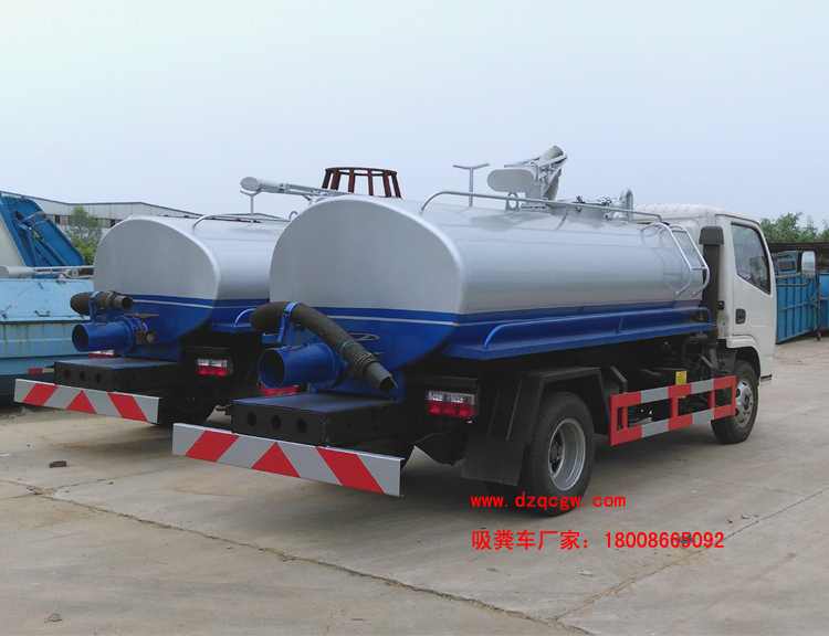 吸糞管 : 可360度旋轉(zhuǎn),抽滿糞罐時(shí)間:≤5min,吸程:≥6m。自吸自排,壽命長(zhǎng),工作速度快,容量大,運(yùn)輸方便,適用于收集運(yùn)輸糞便、泥漿、原油等液體物質(zhì)。P.S.可根據(jù)客戶要求加裝灑水功能,水罐糞罐獨(dú)立分倉(cāng),即可吸糞又可灑水,一車(chē)兩用。加裝水箱或工具箱,加裝液位報(bào)警裝置。