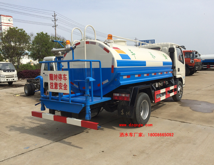 底盤說明:東風(fēng)小多利卡單排駕駛室,3308mm軸距,國五朝柴102馬力或玉柴115馬力發(fā)動機,萬里揚5檔變速箱,7.00R16鋼絲胎,方向助力,ABS,駱駝電瓶,中控鎖,電動門窗。罐體有效容積:1.57立方米。 專用功能:該多功能灑水車適合于各種路面的灑水、噴霧、降溫、除塵、沖洗塵埃臟物,亦可用于園林綠化、市政環(huán)衛(wèi)、路面養(yǎng)護及應(yīng)急消防、運輸飲用水等。專用部分由罐體、水泵、球閥、輸水管道、灑水裝置等部件組成。水泵、取力箱、球閥均為國家定型產(chǎn)品,具有性能良好,工作可靠、壓力高、流量大、油耗低等特點。 改裝部分:標配前沖、后灑、側(cè)噴、工作平臺、綠化高炮、自流閥、消防接口,輸水管3米2根,8噸以上罐體帶高位花灑2個,億豐泵或金龍泵,控制方式為手動。選裝氣動閥門控制;高位花灑,大鴨嘴,藥盤,罐體側(cè)面加裝萬向可調(diào)節(jié)噴頭,罐體后部壓塵噴灑裝置,兩個圓警燈或長警燈,LED箭頭燈,泵可選裝威龍泵或農(nóng)藥噴霧裝置。 |